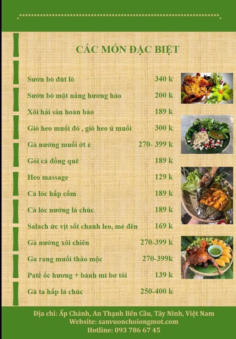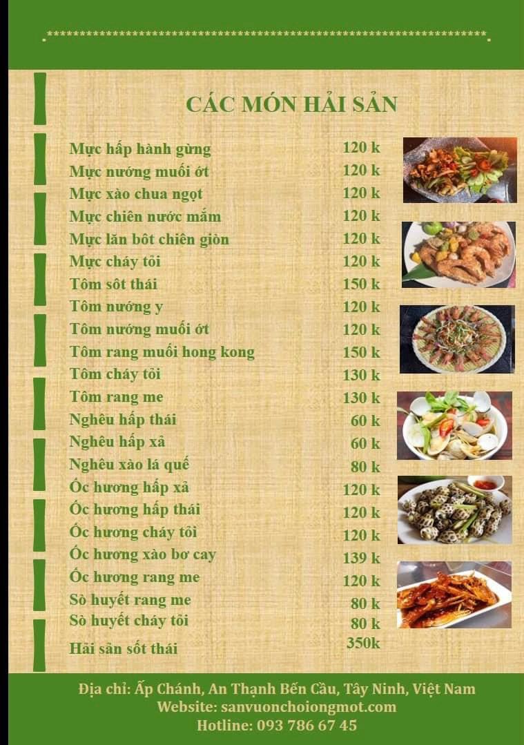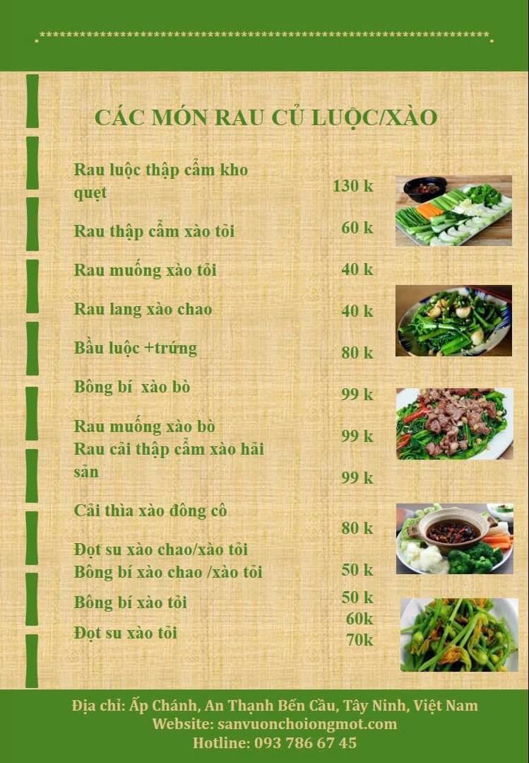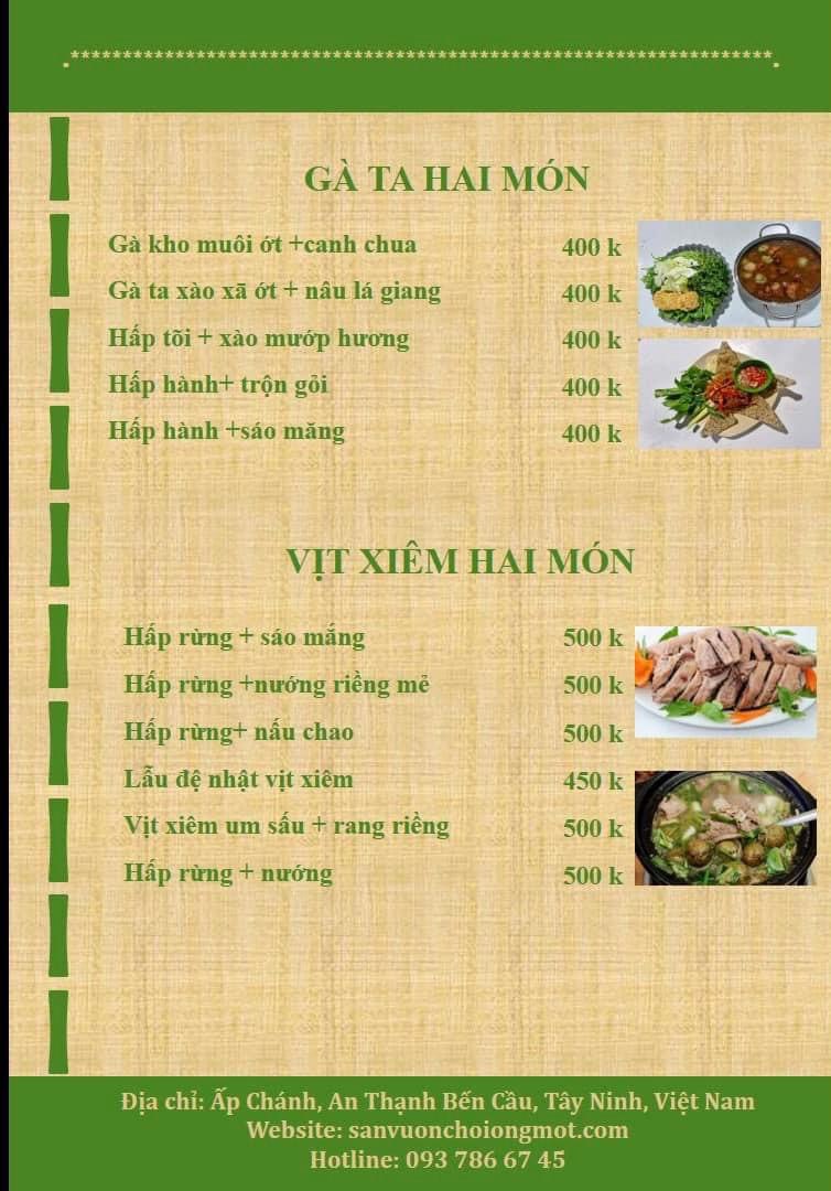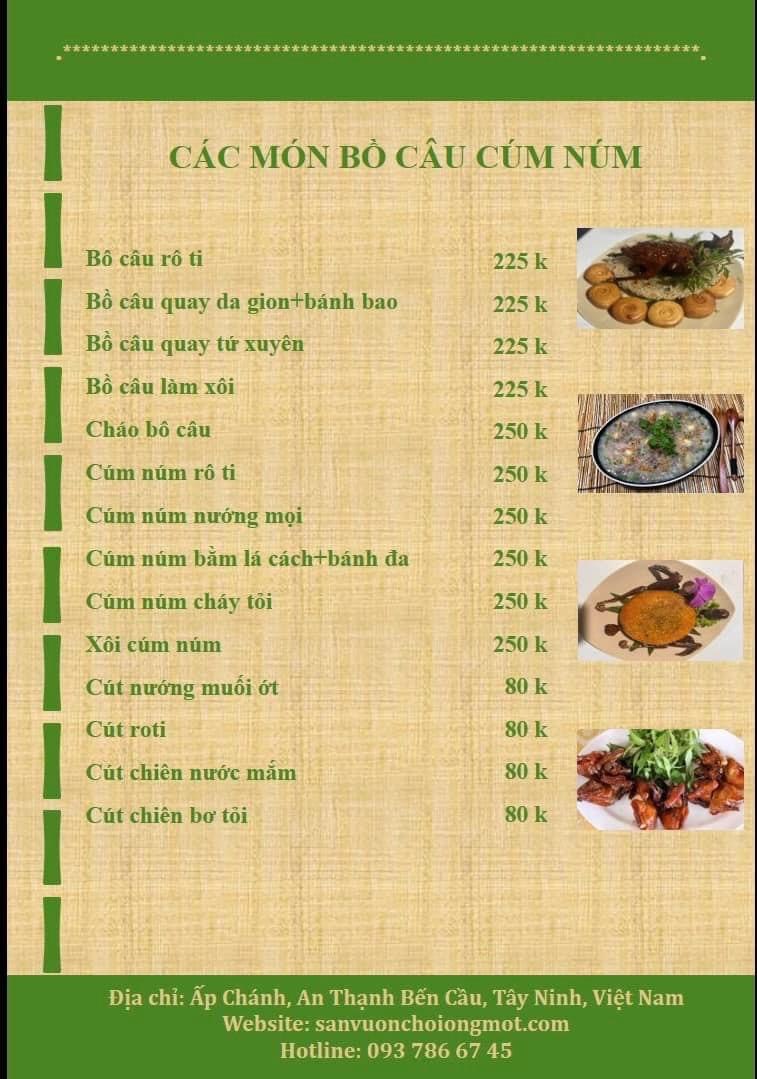 Menu Sân Vườn Chồi Ông Một