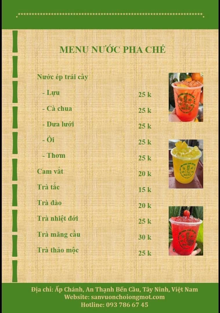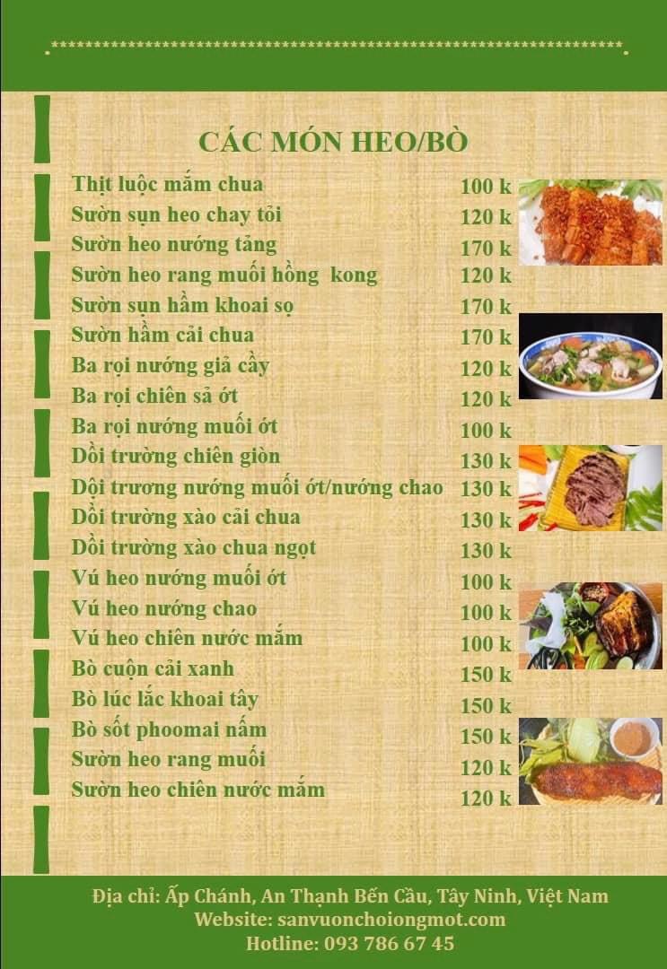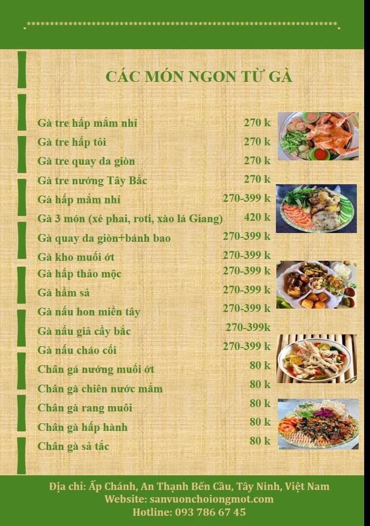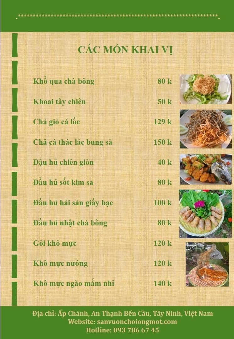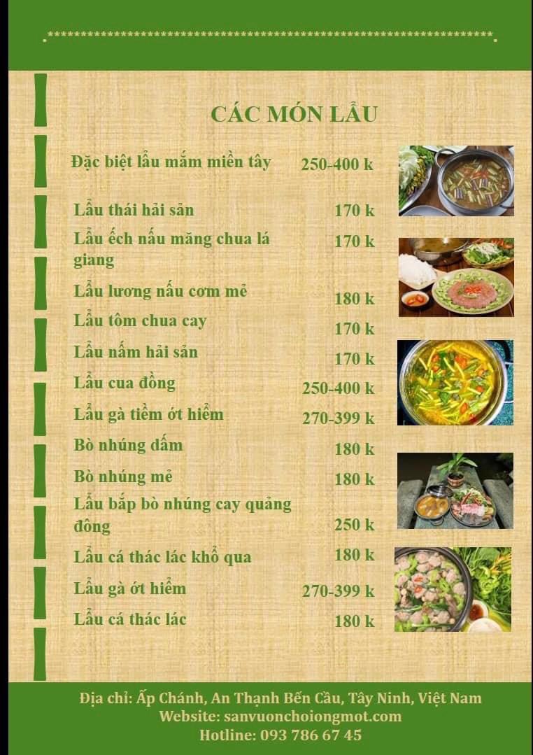 Menu Sân Vườn Chồi Ông Một